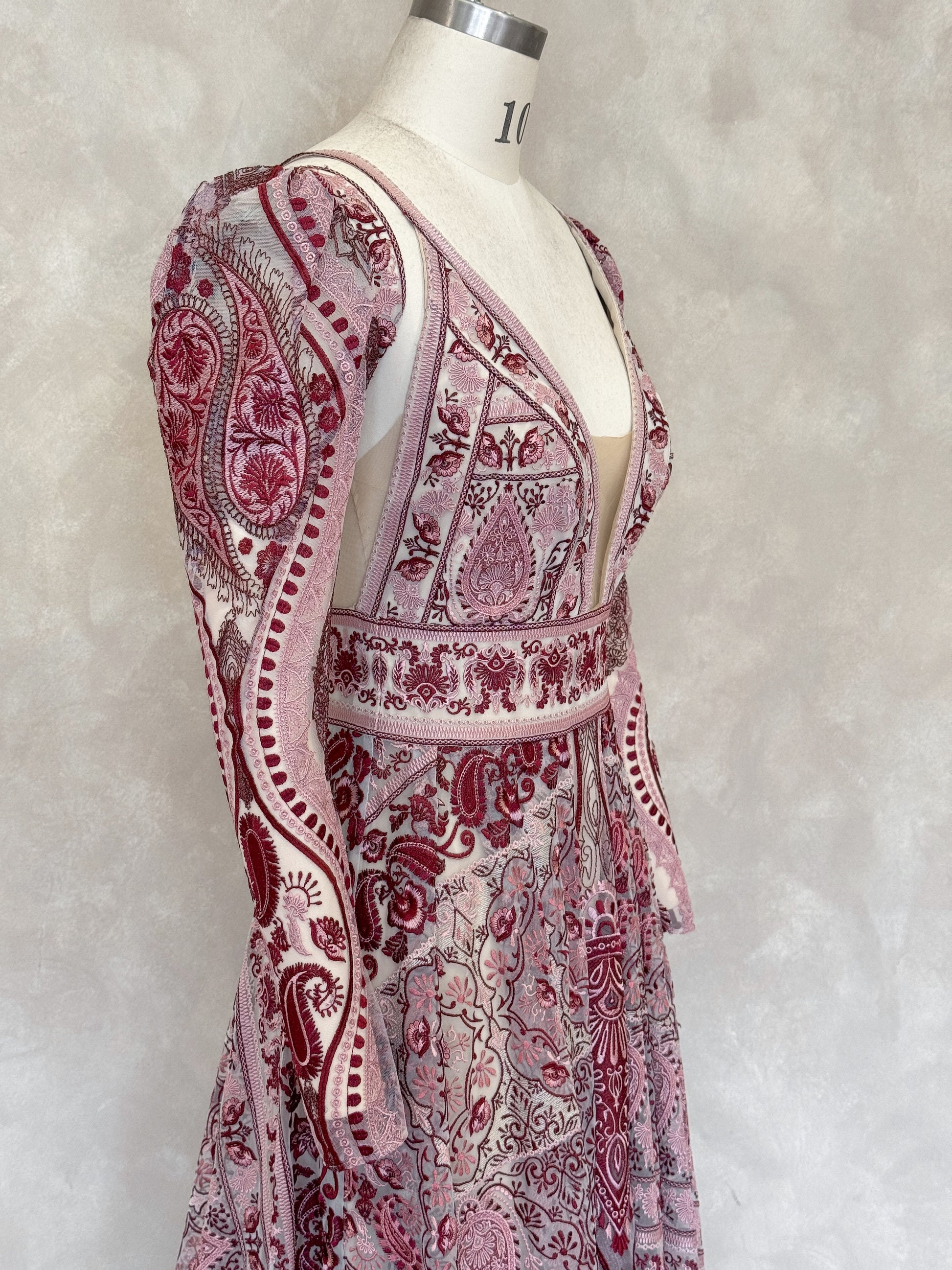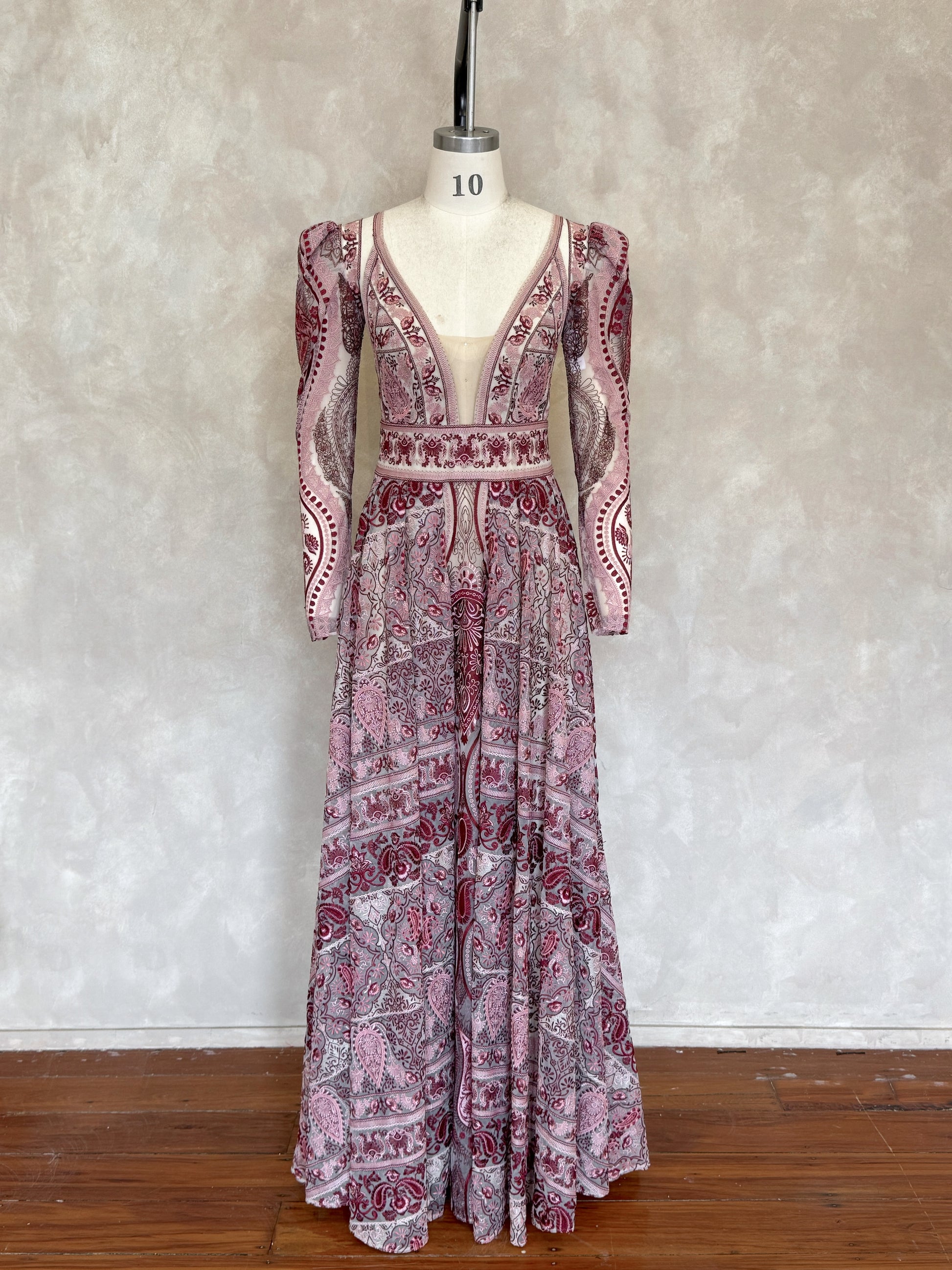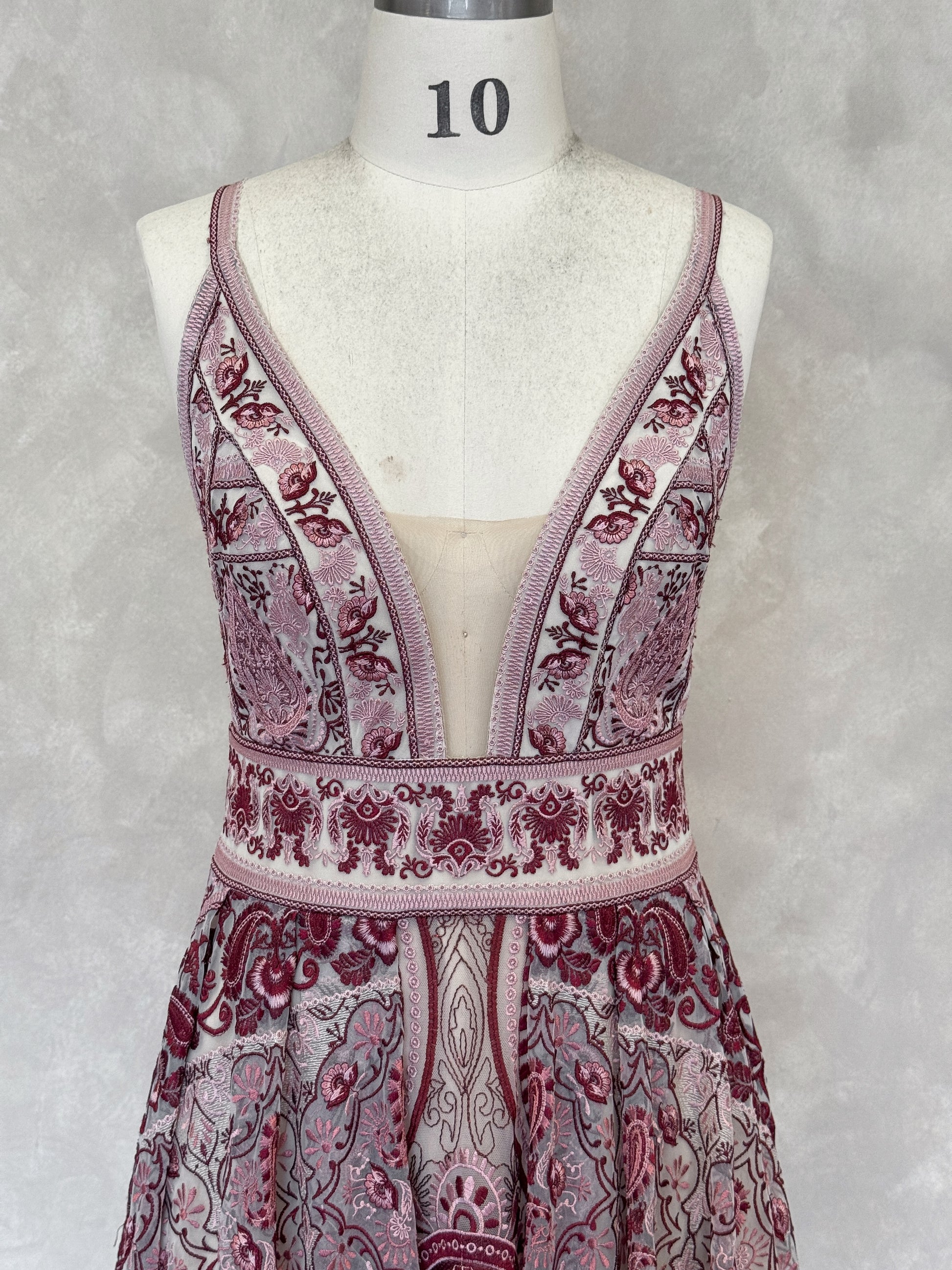Please expect that there may be some very minor imperfections to your sample gown; these may include slight pulling of threads on the outer or lining, slight difference in colour to the original, light marks or stains, or the size may not be 100% true to original (due to the gown being tried on).