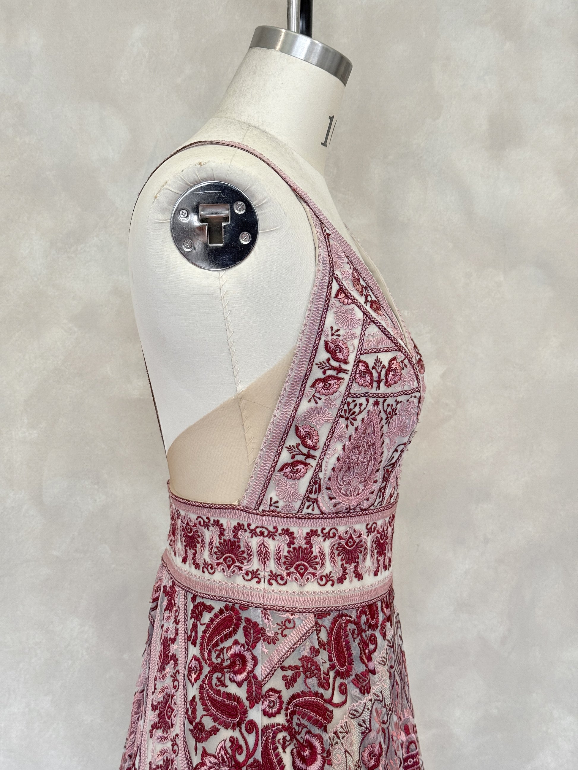 • This sample is being kept in a secure, climate controlled storage. This sample features the following noticeable wear: Lining: small marks on front skirt lining by hem, Outer: small hole in center front mesh in neckline. Photos of the flaws can be found in this listing, and pricing of this sample is reflective of this wear. Additional imperfections may be present on this gown, but are considered *minor.